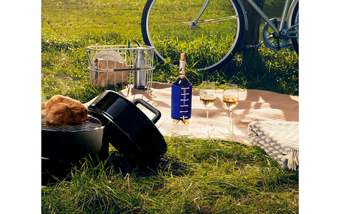 - Passt sich durch die seitlichen Gummizüge jeder Form und Grösse von Weinflaschen an