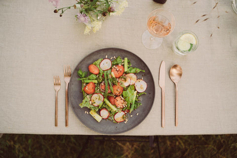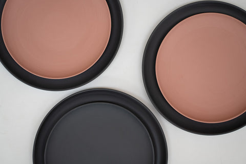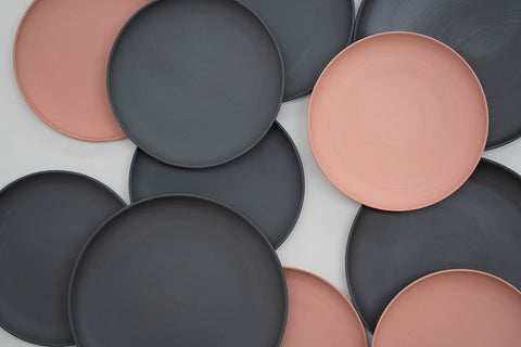 Da die Teller bei 1450 Grad gebrannt werden, wird die Oberfläche des Porzellans wasserundurchlässig. Dieser Fakt lässt es zu auf eine Glasur zu verzichten. Dadurch erhält unser Geschirr einen unverwechselbaren matten Look. Die Färbung des Tons hat zudem den Vorteil, dass Kratzer nicht störend sind, sondern in der natürlichen Struktur des Geschirrs verschwinden.